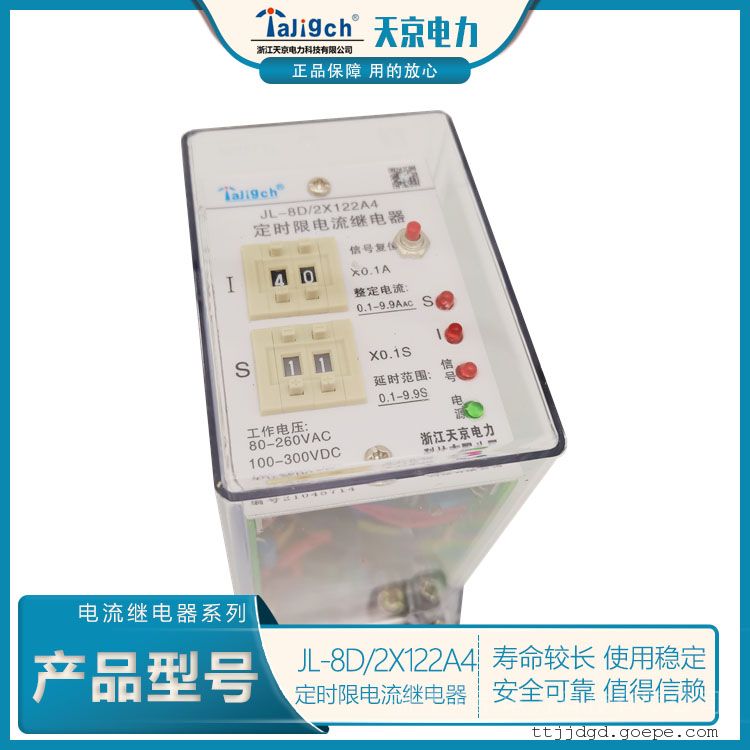 JL-8D系列定时限电流继电器(以下简称电流继电器)作为继电保护元件,主要用于发电机、变压器、输变电线路中,作为电力系统交流回路过负荷或短路的启动元件,给出报警信号或切除故障。