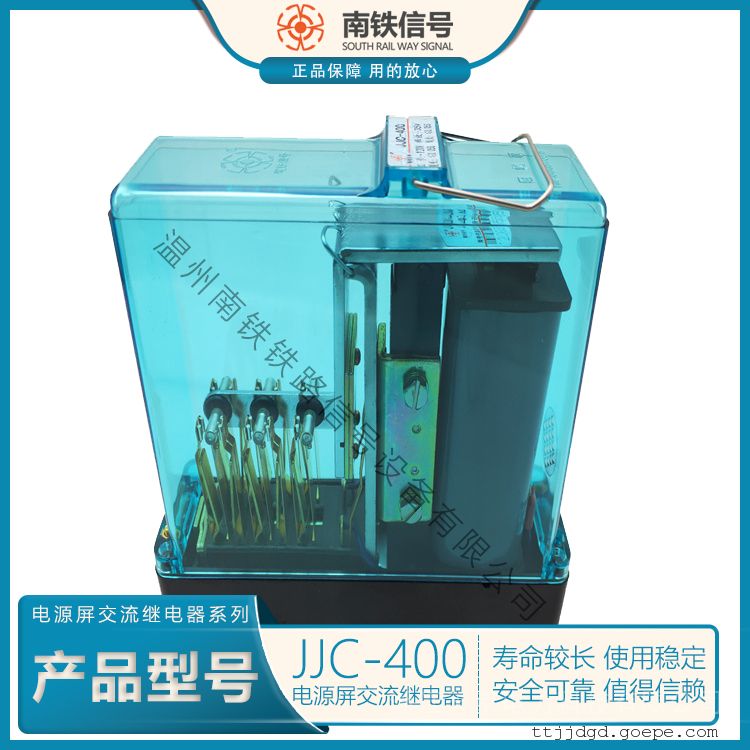 品牌:南铁信号 型号:JJC-400. 应用范围:信号 额定电流:5 A 额定电压:24 V 触点负载:5 触点切换电流:5 触点形式:200 防护特征:防尘 线圈电源:12 线圈功率:1 W