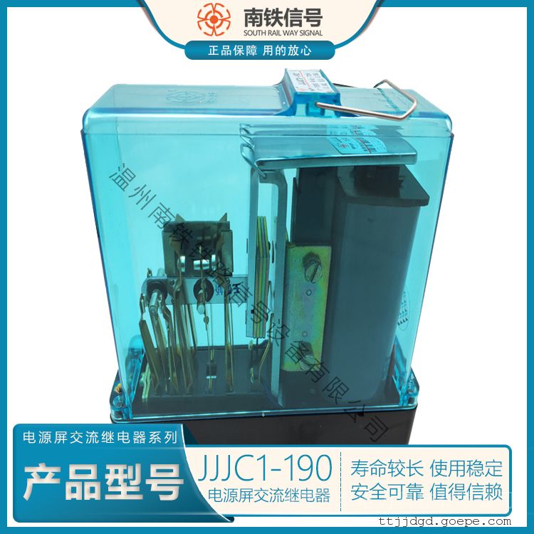 品牌:南铁信号 型号:JJJC1-190. 应用范围:中间 额定电流:5 A 额定电压:24 V 触点负载:5 触点切换电流:5 触点形式:8 防护特征:防尘 线圈电源:24 线圈功率:1 W 温州南铁铁路信号设备有限公司
